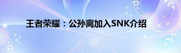 以上就是王者荣耀:公孙离加入SNK介绍的推荐,相信通过王者荣耀:公孙离加入SNK介绍这篇文章能帮到你,也欢迎对游戏很感兴趣小伙伴们一起来探讨。