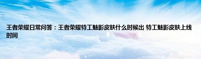 今天来聊聊关于王者荣耀日常问答:王者荣耀特工魅影皮肤什么时候出,特工魅影皮肤上线时间的文章,游戏是很多人的选择,但是游戏玩多了也会身心疲惫,现在就为大家来简单介绍下王者荣耀日常问答:王者荣耀特工魅影皮肤什么时候出,特工魅影皮肤上线时间,希望对各位小伙伴们有所帮助。