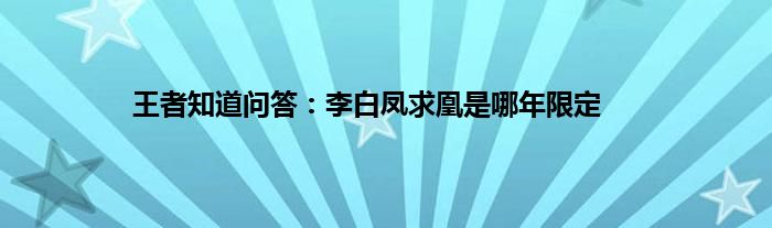 以上就是王者知道问答:李白凤求凰是哪年限定的推荐,相信通过王者知道问答:李白凤求凰是哪年限定这篇文章能帮到你,也欢迎对游戏很感兴趣小伙伴们一起来探讨。