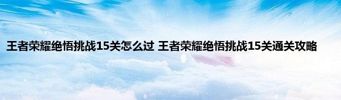 王者荣耀绝悟挑战15关逐梦KPL通关攻略