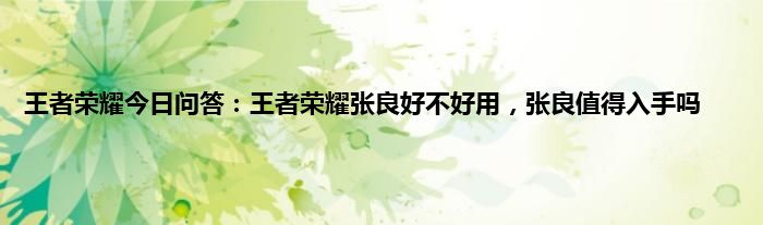 问:王者荣耀张良好不好用?张良值得入手吗?