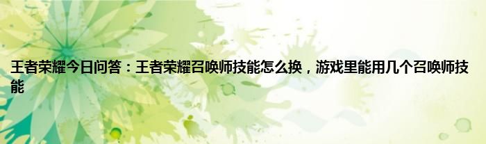 今天来聊聊关于王者荣耀今日问答:王者荣耀召唤师技能怎么换,游戏里能用几个召唤师技能的文章,游戏是很多人的选择,但是游戏玩多了也会身心疲惫,现在就为大家来简单介绍下王者荣耀今日问答:王者荣耀召唤师技能怎么换,游戏里能用几个召唤师技能,希望对各位小伙伴们有所帮助。