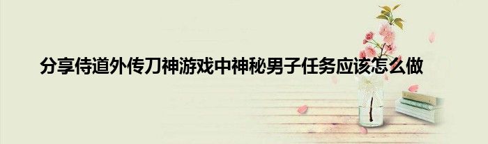 相信通过分享侍道外传刀神游戏中神秘男子任务应该怎么做这篇文章能帮到你,也欢迎对游戏很感兴趣小伙伴们一起来探讨。
