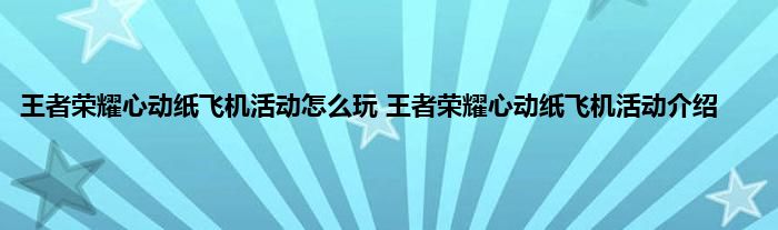 《王者荣耀》心动纸飞机活动介绍