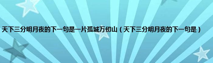 天下三分明月夜的下一句是一片孤城万仞山(天下三分明月夜的下一句是)