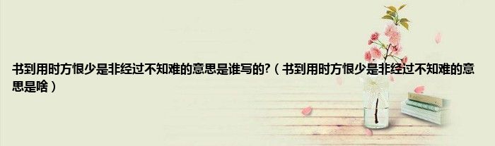 书到用时方恨少是非经过不知难的意思是谁写的?(书到用时方恨少是非经过不知难的意思是啥)