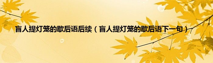 大家好,小科来为大家解答以上问题。盲人提灯笼的歇后语后续,盲人提灯笼的歇后语下一句很多人还不知道,现在让我们一起来看看吧!