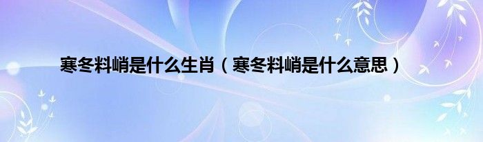 大家好,小科来为大家解答以上问题。寒冬料峭是什么生肖,寒冬料峭是什么意思很多人还不知道,现在让我们一起来看看吧!