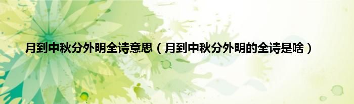 大家好,小科来为大家解答以上问题。月到中秋分外明全诗意思,月到中秋分外明的全诗是啥很多人还不知道,现在让我们一起来看看吧!