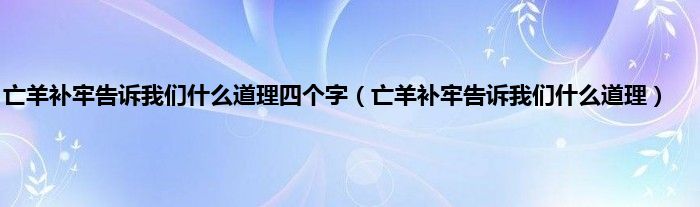 大家好,小科来为大家解答以上问题。亡羊补牢告诉我们什么道理四个字,亡羊补牢告诉我们什么道理很多人还不知道,现在让我们一起来看看吧!