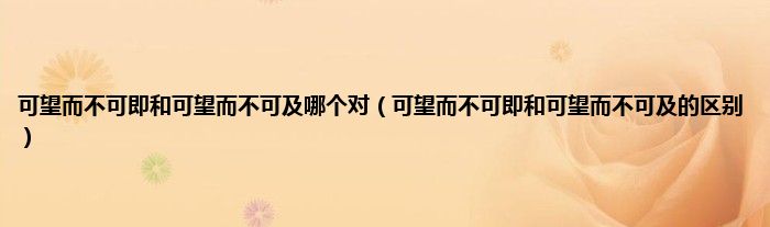 大家好,小科来为大家解答以上问题。可望而不可即和可望而不可及哪个对,可望而不可即和可望而不可及的区别很多人还不知道,现在让我们一起来看看吧!