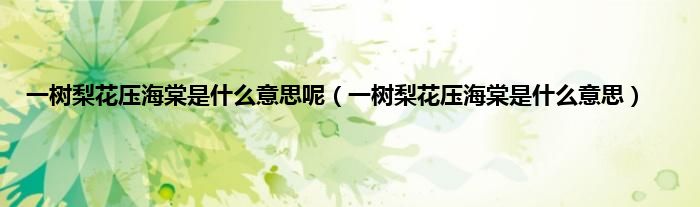 大家好,小科来为大家解答以上问题。一树梨花压海棠是什么意思呢,一树梨花压海棠是什么意思很多人还不知道,现在让我们一起来看看吧!