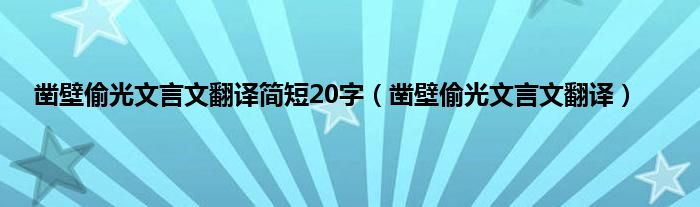 大家好,小科来为大家解答以上问题。凿壁偷光文言文翻译简短20字,凿壁偷光文言文翻译很多人还不知道,现在让我们一起来看看吧!
