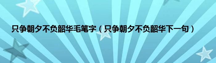 大家好,小科来为大家解答以上问题。只争朝夕不负韶华毛笔字,只争朝夕不负韶华下一句很多人还不知道,现在让我们一起来看看吧!