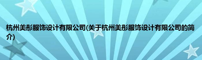 本文关于杭州美彤服饰设计有限公司的简介就讲解完毕,希望对大家有所帮助。