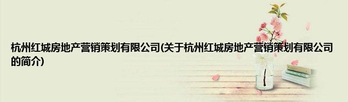 大家好,杭州红城房地产营销策划有限公司,关于杭州红城房地产营销策划有限公司的简介很多人还不知道,现在让我们一起来看看吧!