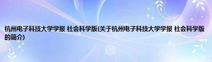 本文关于杭州电子科技大学学报 社会科学版的简介就讲解完毕,希望对大家有所帮助。