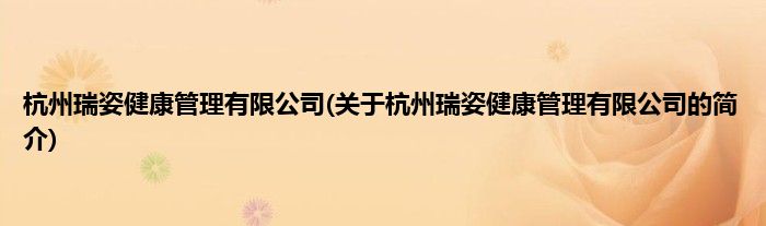 本文关于杭州瑞姿健康管理有限公司的简介就讲解完毕,希望对大家有所帮助。