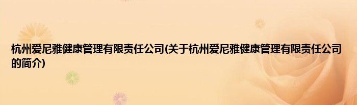 本文关于杭州爱尼雅健康管理有限责任公司的简介就讲解完毕,希望对大家有所帮助。