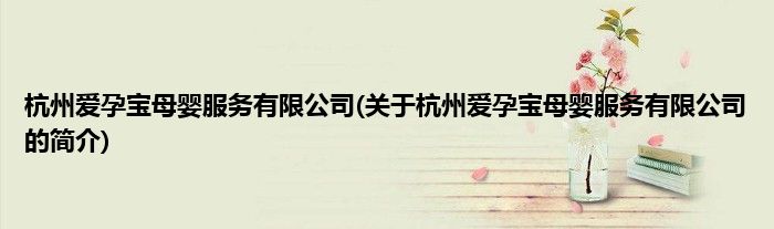 本文关于杭州爱孕宝母婴服务有限公司的简介就讲解完毕,希望对大家有所帮助。
