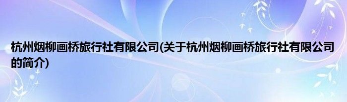 本文关于杭州烟柳画桥旅行社有限公司的简介就讲解完毕,希望对大家有所帮助。