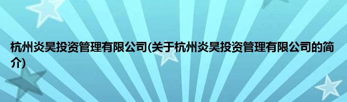 本文关于杭州炎昊投资管理有限公司的简介就讲解完毕,希望对大家有所帮助。