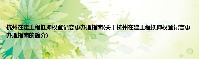 杭州在建工程抵押权登记变更办理指南(关于杭州在建工程抵押权登记变更办理指南的简介)