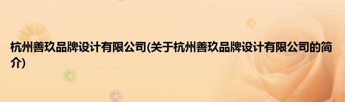 大家好,杭州善玖品牌设计有限公司,关于杭州善玖品牌设计有限公司的简介很多人还不知道,现在让我们一起来看看吧!