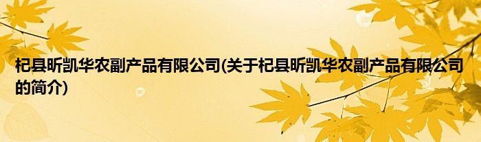本文关于杞县昕凯华农副产品有限公司的简介就讲解完毕,希望对大家有所帮助。