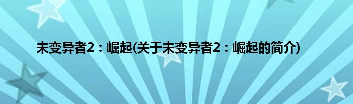 大家好,未变异者2:崛起,关于未变异者2:崛起的简介很多人还不知道,现在让我们一起来看看吧!