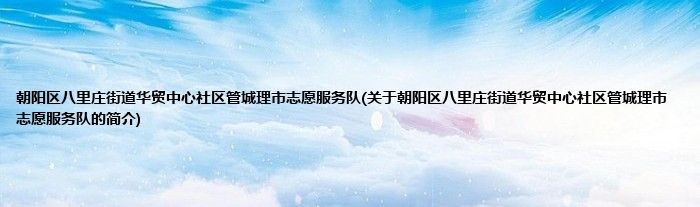 大家好,朝阳区八里庄街道华贸中心社区管城理市志愿服务队,关于朝阳区八里庄街道华贸中心社区管城理市志愿服务队的简介很多人还不知道,现在让我们一起来看看吧!