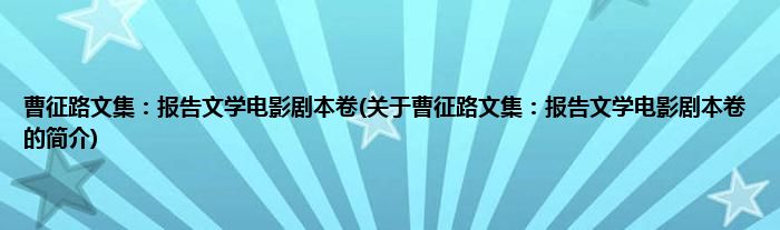 大家好,曹征路文集:报告文学电影剧本卷,关于曹征路文集:报告文学电影剧本卷的简介很多人还不知道,现在让我们一起来看看吧!