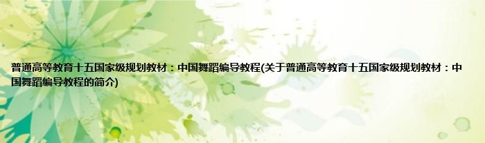 本文关于普通高等教育十五国家级规划教材:中国舞蹈编导教程的简介就讲解完毕,希望对大家有所帮助。