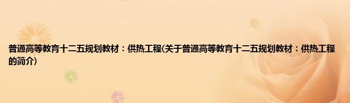 本文关于普通高等教育十二五规划教材:供热工程的简介就讲解完毕,希望对大家有所帮助。