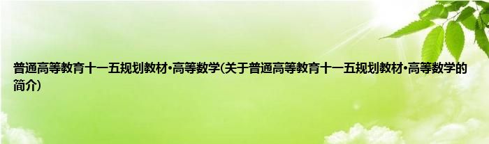 本文关于普通高等教育十一五规划教材·高等数学的简介就讲解完毕,希望对大家有所帮助。
