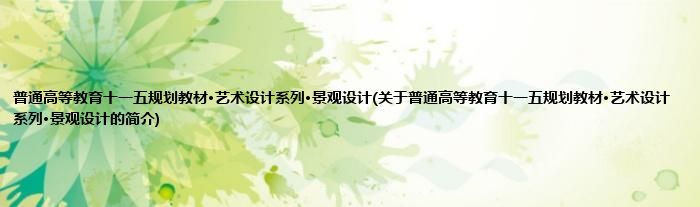 大家好,普通高等教育十一五规划教材·艺术设计系列·景观设计,关于普通高等教育十一五规划教材·艺术设计系列·景观设计的简介很多人还不知道,现在让我们一起来看看吧!