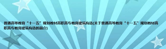 本文关于普通高等教育“十一五”规划教材高职高专教育建筑构造的简介就讲解完毕,希望对大家有所帮助。