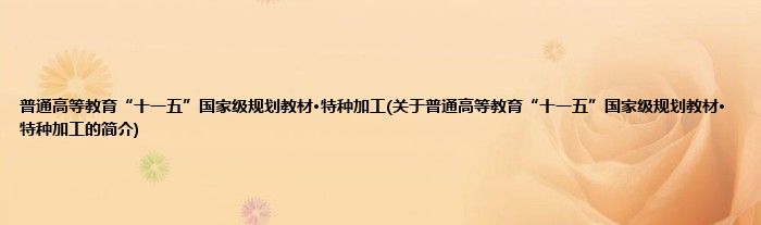 本文关于普通高等教育“十一五”国家级规划教材·特种加工的简介就讲解完毕,希望对大家有所帮助。