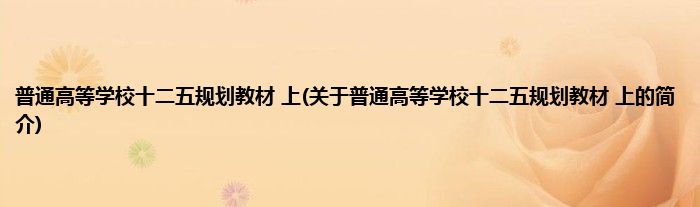 本文关于普通高等学校十二五规划教材 上的简介就讲解完毕,希望对大家有所帮助。