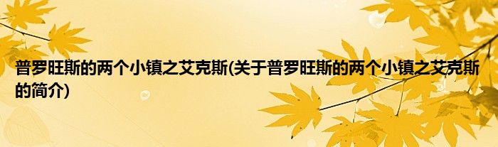 1、 《普罗旺斯的两个小镇之艾克斯》是2010年11月1日新星出版社出版的。