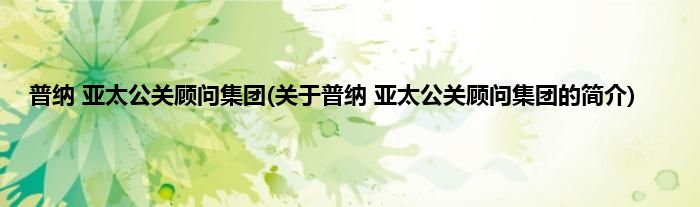本文关于普纳 亚太公关顾问集团的简介就讲解完毕,希望对大家有所帮助。