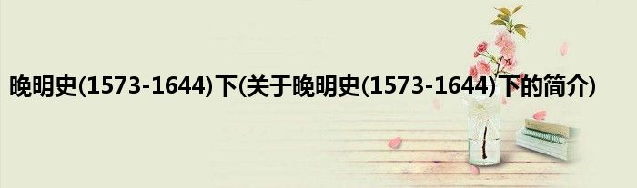本文关于晚明史(1573-1644)下的简介就讲解完毕,希望对大家有所帮助。