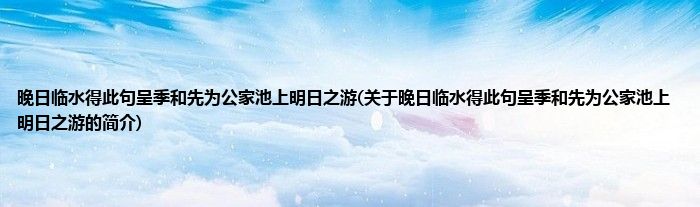 本文关于晚日临水得此句呈季和先为公家池上明日之游的简介就讲解完毕,希望对大家有所帮助。
