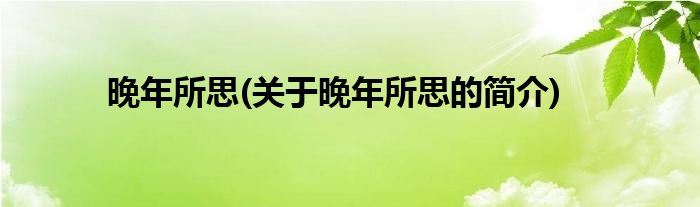 本文关于晚年所思的简介就讲解完毕,希望对大家有所帮助。