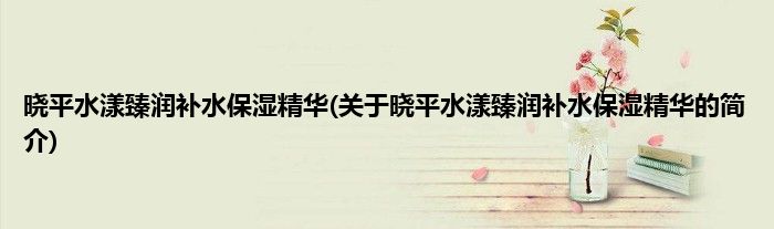 本文关于晓平水漾臻润补水保湿精华的简介就讲解完毕,希望对大家有所帮助。