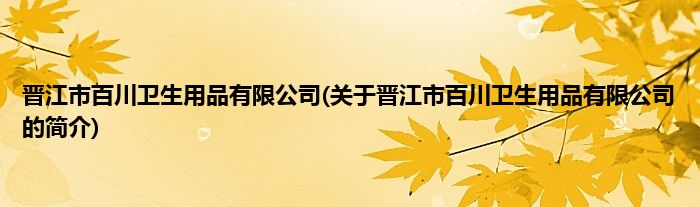 本文关于晋江市百川卫生用品有限公司的简介就讲解完毕,希望对大家有所帮助。