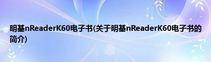 本文关于明基nReaderK60电子书的简介就讲解完毕,希望对大家有所帮助。