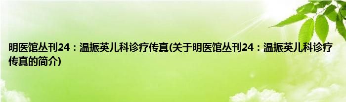 本文关于明医馆丛刊24:温振英儿科诊疗传真的简介就讲解完毕,希望对大家有所帮助。