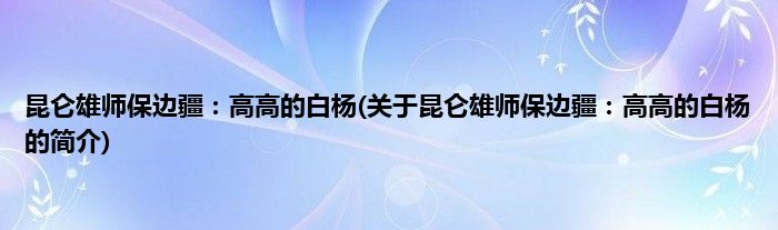 本文关于昆仑雄师保边疆:高高的白杨的简介就讲解完毕,希望对大家有所帮助。