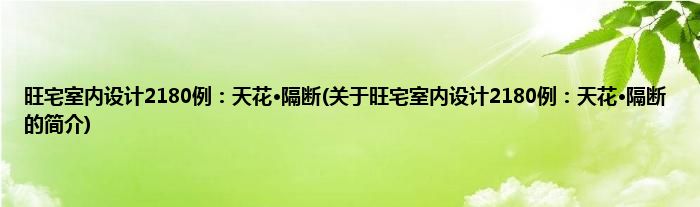 大家好,旺宅室内设计2180例:天花·隔断,关于旺宅室内设计2180例:天花·隔断的简介很多人还不知道,现在让我们一起来看看吧!